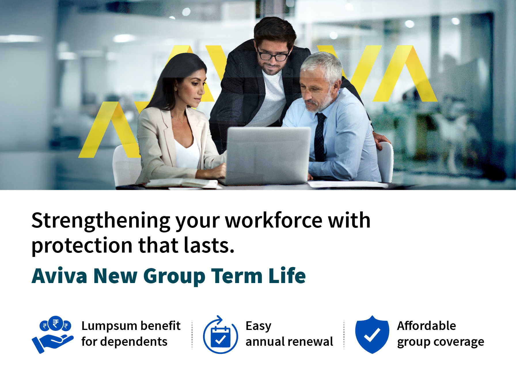 Employer or Affinity group either ways you always want a fulfilling life for your employees/members and their loved ones. One of the individual’s prime concerns is the security and safety of their families. Aviva New Group Term Life is a yearly renewable group insurance plan designed to provide life cover to Employer-Employee.